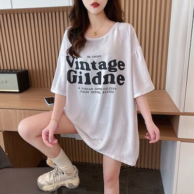 Tシャツカットソー アイスシルク麻 夏服 Tシャツ レディース 韓国ファッション ゆったり 体型カバー? tシャツ 半袖 大きいサイズ ラウンドネックトップス カジュアル百掛け ロングTシャツ | KAGEYAMA-SECOND