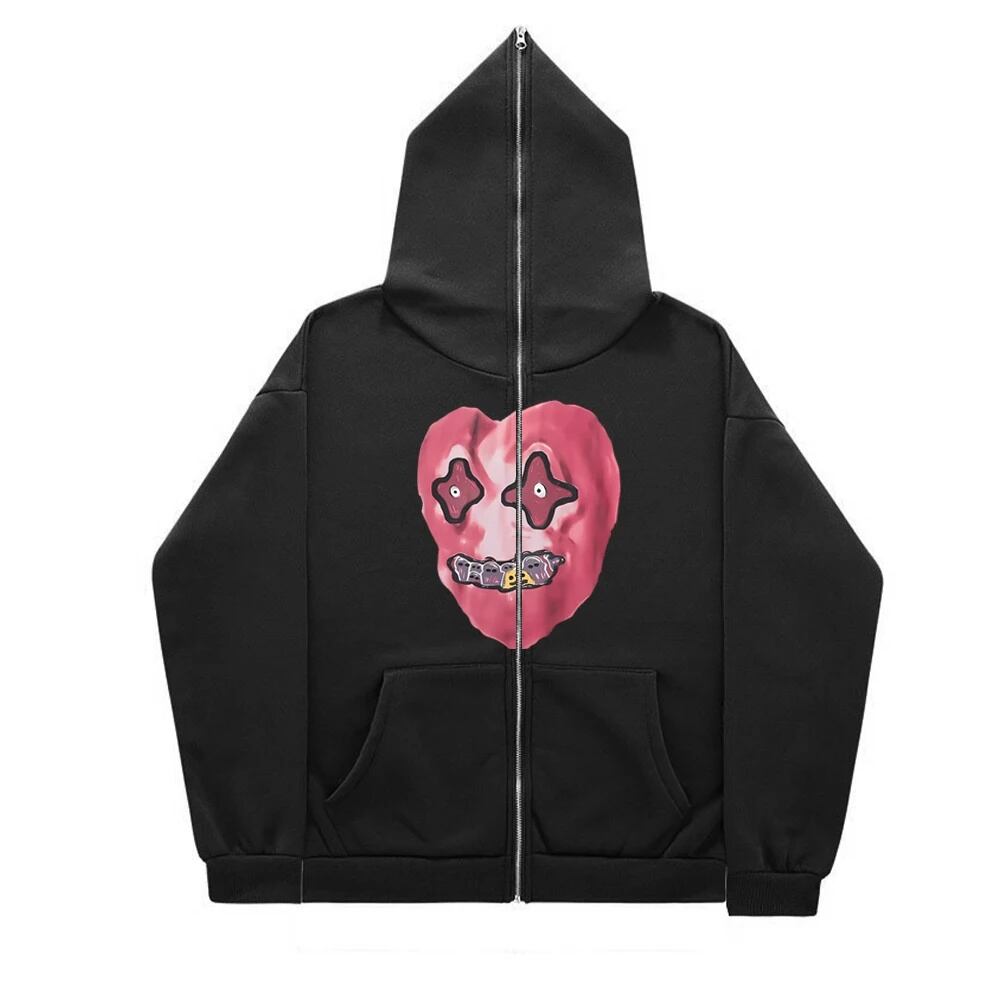 女性のハートスケルトンプリントトレーナー,ゴシックフーディー,原宿ジャケット,フルジップコート,アニメ服,グランジ,y2k パーカー ジーパン ジーンズ T240917095638_06