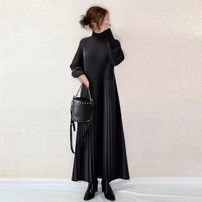 新作 シンプル ニット 切り替え ワンピース ロングワンピース ワンピース ワンピース 秋冬 長袖 Tシャツワンピース 大きめサイズ