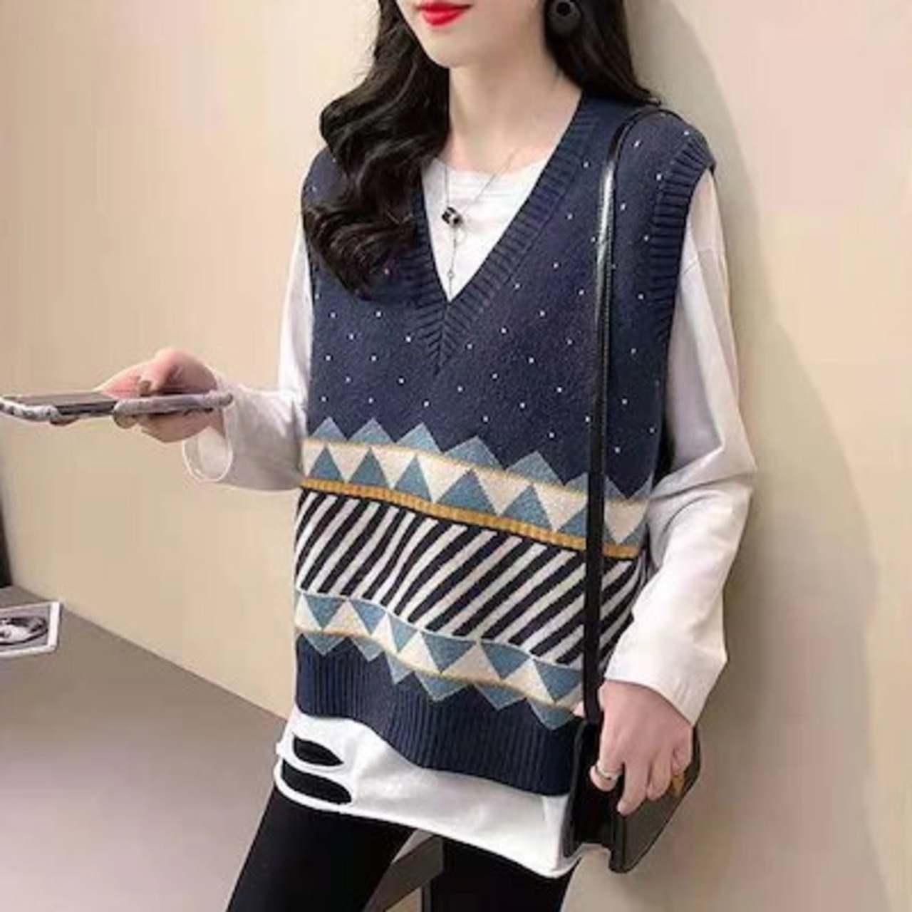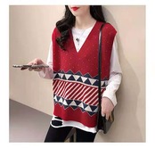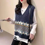 ベーシックニット レトロ日系けだるいセーターコート婦人春秋服新型ゆったり韓国版vネックニットベスト
