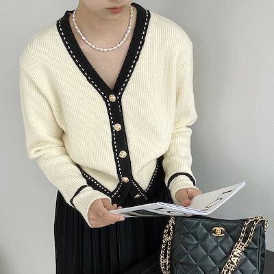 ベーシックニット 2024秋冬の新韓系優しくだるくてゆったりしたVネック痩せた穴が見える色のセーターコートの女性ファッション