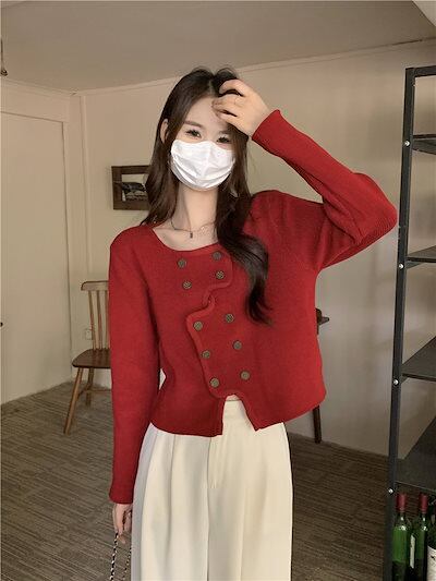 ベーシックニット 秋の2023年新デザインセンスクロスが気になる細身の香風セーターコートニットベーシックニットトップス女 ベーシックニット パーカー フード付き パーカー オーバ | KAGEYAMA-SECOND