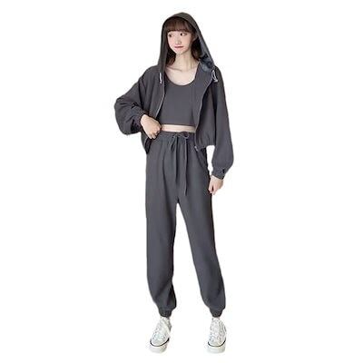 セットアップ スリーピースセット 新しいスタイル 韓国版 春と秋 シンプル ゆったり 長袖 フード付き スウェット ドローストリング スウェットパンツ ノースリーブベスト スーツ 韓国ファッション | KAGEYAMA-SECOND