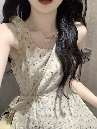 ヘビロテ!キャミワンピース フランス 初恋 さいころ 夏 袖なし やさしい 質感 やせて見える 腰をすぼめる 甘い 新しい ドレス レディース 韓国