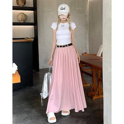 マキシスカートアカデミア風ハイウエストドレープ感半身スカート春夏ムードプリーツスカート高級感ロングスカート レディース 韓国ファッション