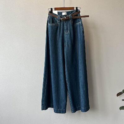 ワイドパンツ デニム レディース 春 秋 冬 フレアパンツ ガウチョパンツ ロング丈 デニムパンツ 体型カバー おしゃれ ゆったり カジュアル ナチュラルカジュアル | KAGEYAMA-SECOND