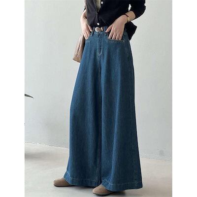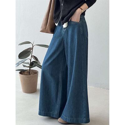 デニムパンツ パンツ レディース デニム 春 夏 秋 冬 無地 ワイドパンツ ジーンズ ロング 体型カバー ガウチョパンツ ボトムス フレアパンツ リラックスパンツ | KAGEYAMA-SECOND
