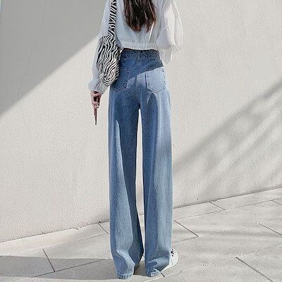 ハイウエストジーンズ レディース ストレート ゆったり 新作 春 夏 秋 冬 万能 ドレープ ウエスト調節可能 ワイドパンツ