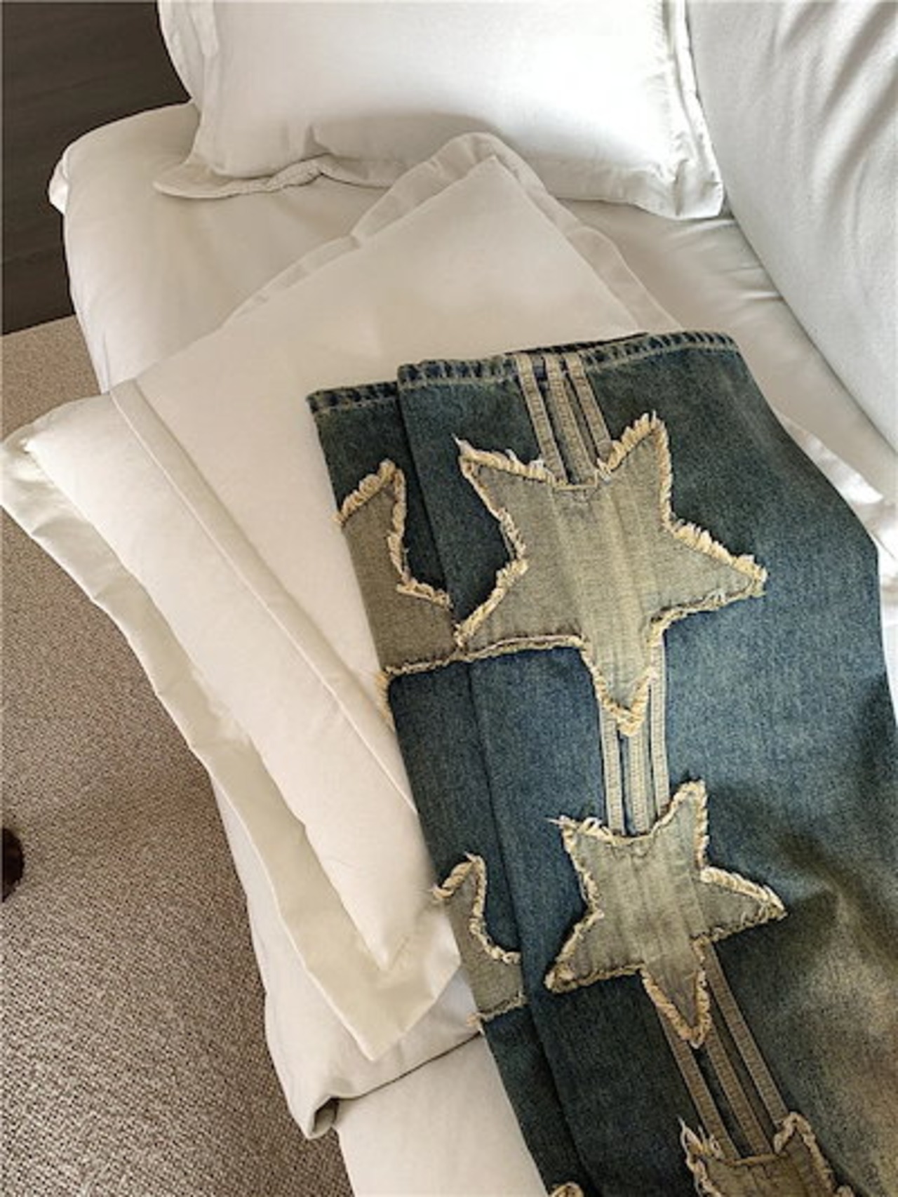 星 ジーンズ デニムパンツ 長ズボン ワイドパンツ gパン カットオフデニム エイジング加工 ゆったり レディース 春 秋 冬 ヒップホップ ダンス カジュアル ファッション | KAGEYAMA-SECOND