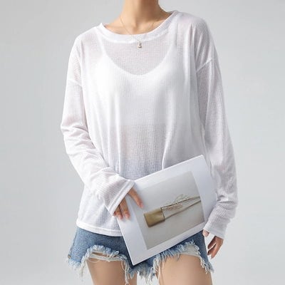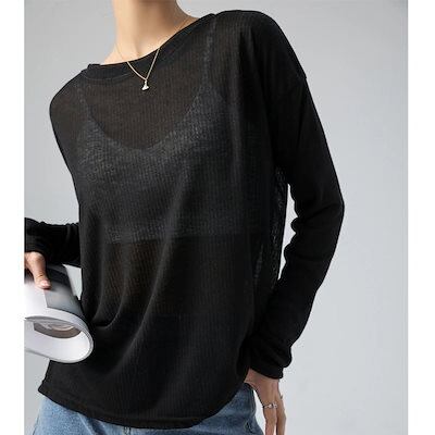 【2枚購入で300.円OFF】シアーロングスリーブTシャツ 袖クシュ ロンT レイヤード シアー トップス tシャツ 長袖 重ね着 Uネック インナー 無地 クルーネック 体型カバー 紫外線UV対策 | KAGEYAMA-SECOND