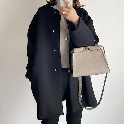 コート チェスターコート レディース ロングコート アウター 無地 羽織 長袖 秋冬 ノーカラー ゆったり お尻隠れ ロング丈 カジュアル風 お洒落 通勤 通学 前開け | KAGEYAMA-SECOND