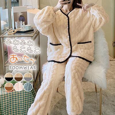 ルームウェア レディース 長袖 冬 可愛い ふんわり もこもこ ボア 防寒 保温 トップス パンツ 上下セット セットアップ 2点セット パジャマ 部屋着 ゆったり ノーカラー 前開き 起毛 ロングパ | KAGEYAMA-SECOND