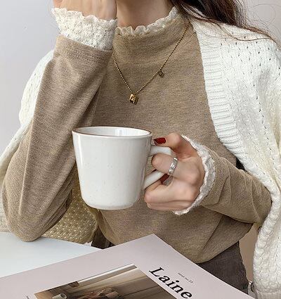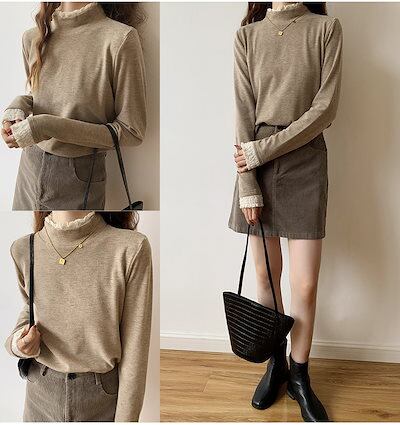 裏起毛 カットソー 重ね着風 トップス 全2色 ハイネック レース フリル 長袖 レディース ナチュラル タートルネック ハーフネック ロンT インナー 薄手 柔らかい 伸縮性 ストレッチ シンプル | KAGEYAMA-SECOND