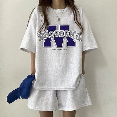 運動 セットアップ セットアップ 大きめサイズ半袖+ショットパンツ 上下2点セットTシャツ