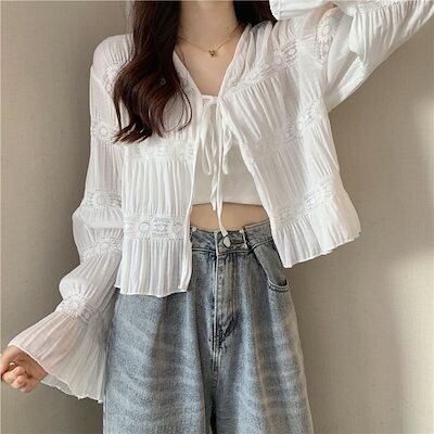 韓国ファッション UVカット日焼け止め 紫外線対策 レディース トップス カーディガン シャツ Tシャ 百掛け 薄手 かわいい カーディガン カーディガン 2024春新作 | KAGEYAMA-SECOND