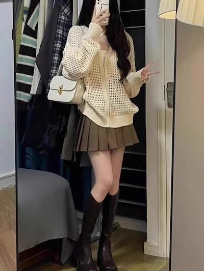 ニットカーディガン 透かし彫り カーディガン ベーシックニット紫外線対策 長袖トップス 韓国ファッション ゆったりスウェットアウター ニットセーターメガ割