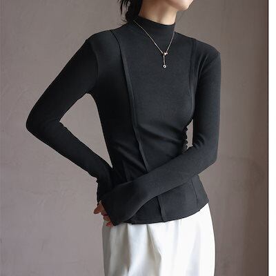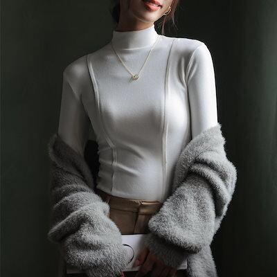 ボトムシャツ ハーフ ハイネック 秋冬 ボトムス シャツ 女性 インナー スリム 長袖