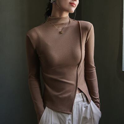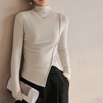 ボトムシャツハーフハイネックボトムシャツ女性秋冬新作内部長袖ブラウス