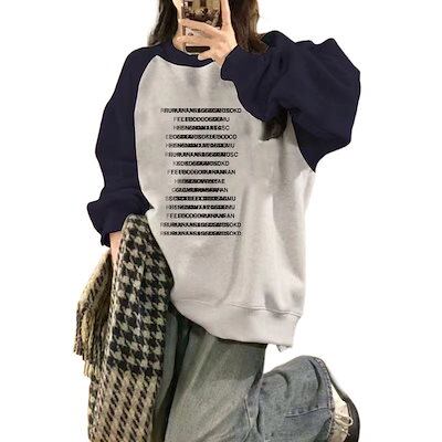 スウェット 衝突スプライシングセーター女性春と秋の新しいレトロな緩い薄いトップス