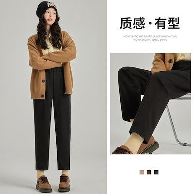 テーパードパンツ ツイードパンツ レディース 2024 秋冬新作 ハイウエストハーレムパンツ ゆったりウエスタンパンツ カジュアルハーレムパンツ