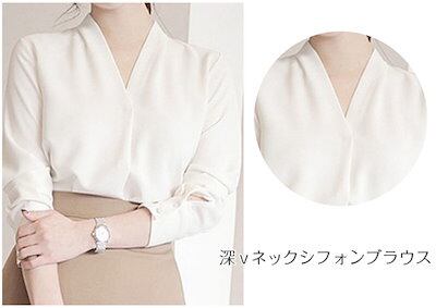 【超目玉新作】シフォンブラウス レディース 長袖 Vネック 春 秋 薄手 きれいめ 大きいサイズ オフィス シャツ ブラウス フォーマル スキッパー 抜き襟 とろみシャツ トップス 韓国ファッション | KAGEYAMA-SECOND