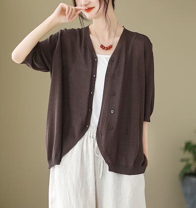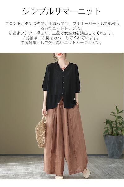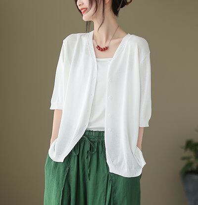 半袖 ニット カーディガン レディース サマーニット 五分袖 羽織り 薄手 ニットカーディガン トップス オフィス UVカット 通勤 春夏 夏 夏服 カジュアル 涼しいニット 無地 シンプル サマー | KAGEYAMA-SECOND
