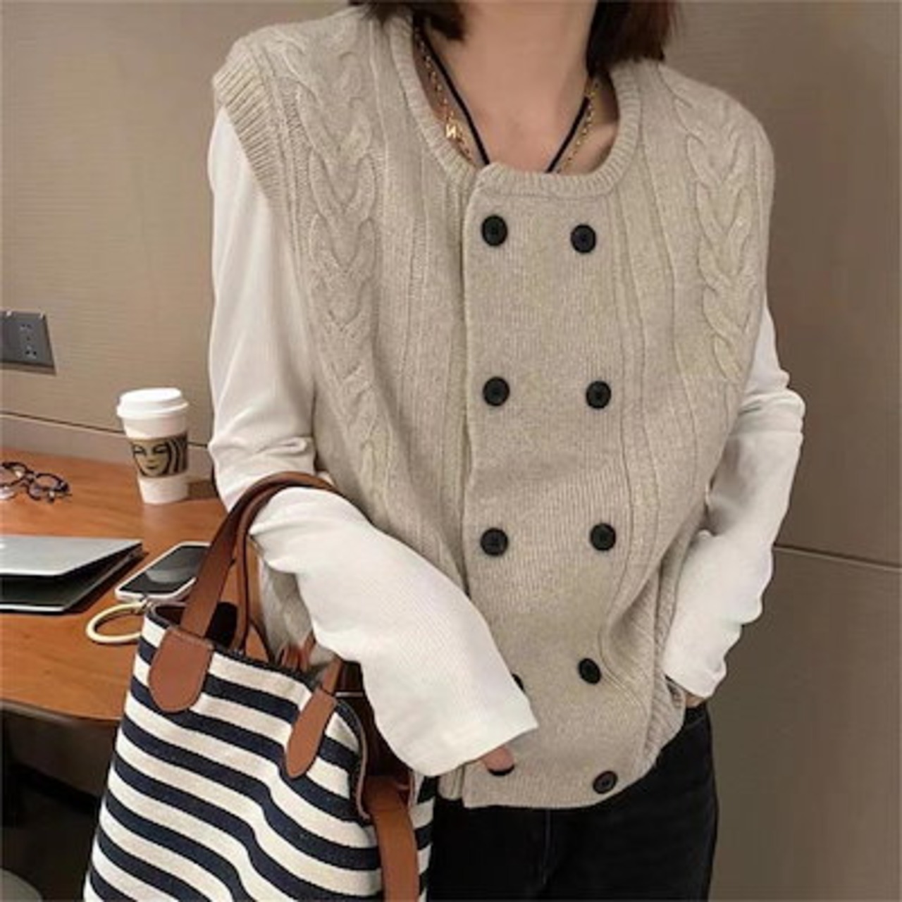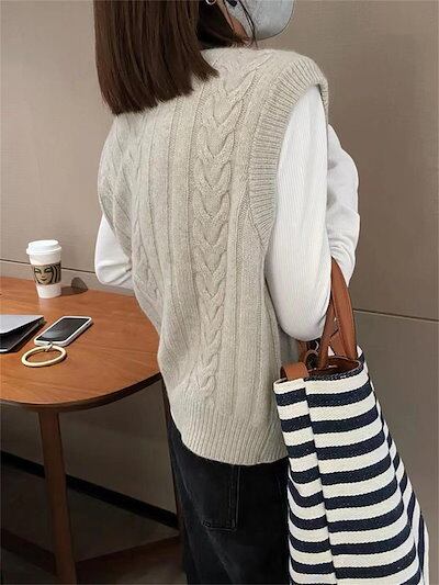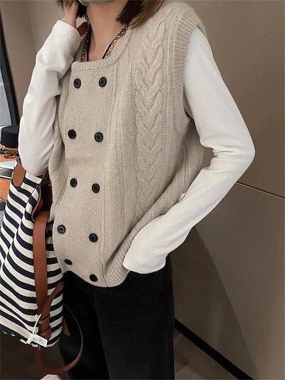 ベスト レディース 秋冬 ニット ケーブル編み フォーマル クルーネック トップス あったか 重ね着風 ジレ ニットベスト ゆったり レイヤード ノースリーブ プルオーバー シンプル お洒落 きれいめ | KAGEYAMA-SECOND