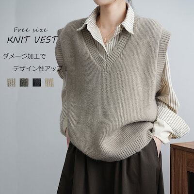 ニットベスト レディース ニット ノースリーブ セーター 秋 冬 無地 重ね着 レイヤード Vネック トップス 柔らかい ニットチュニック プルオーバー ベスト カジュアル おしゃれ ナチュラル ニッ | KAGEYAMA-SECOND