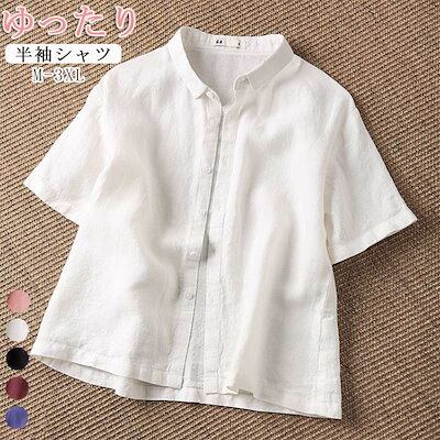 半袖シャツ レディース トップス ブラウス シャツブラウス 半袖 無地 白シャツ 折襟 ショート丈 前開け シンプル 折襟シャツ 襟付き 前開き 大きいサイズ アウター 体型カバー シンプル お出掛け | KAGEYAMA-SECOND