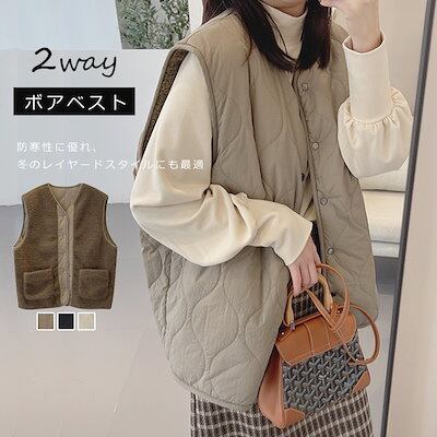 ベスト ジレ レディース ボア 秋 秋冬 冬 ブルゾン リバーシブル 2way キルティング 中綿 トレンド レイヤード 重ね着 ボアジャケット シンプル アウター 防寒コート ポケット付き フェミニ | KAGEYAMA-SECOND