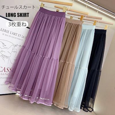 スカート ロング レディース ロングスカート チュール マキシ丈スカート チュールスカート ロング丈 マキシ丈 フレア Aライン ドッキング フレアスカート ウエストゴム ボリューム オシャレ きれい | KAGEYAMA-SECOND