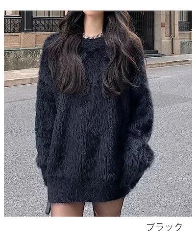 シャギー ニット トップス レディース 秋 冬 トップス ニット セーター ニットトップス プルオーバー シャギーニット 長袖 起毛 ミドル丈 ニットセーター 体型カバー ゆったり ふわふわ 黒 ブラ | KAGEYAMA-SECOND