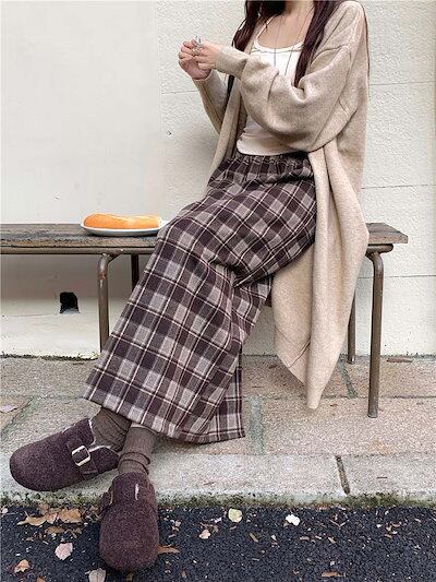 タイトスカート スリット チェック柄 レディース スリットタイトスカート スカート ボトムス 秋冬 チェック柄スカート ロング丈 タイトスカート ウエストゴム ミモレ丈 チェックスカート 後ろスリット | KAGEYAMA-SECOND