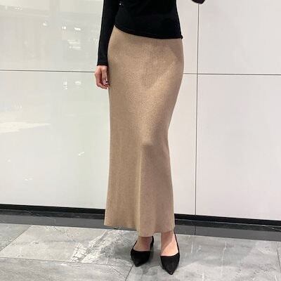 必須アイテム! アンユー バンディング ニット マキシ リブ ロング スカート