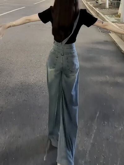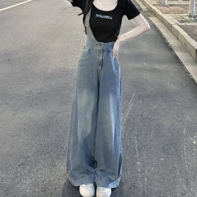 コーデ完成!サロペット ワンショルダーデニムストラップパンツ2024夏新作ジーンズハイウエストゆったりワイドパンツ女性