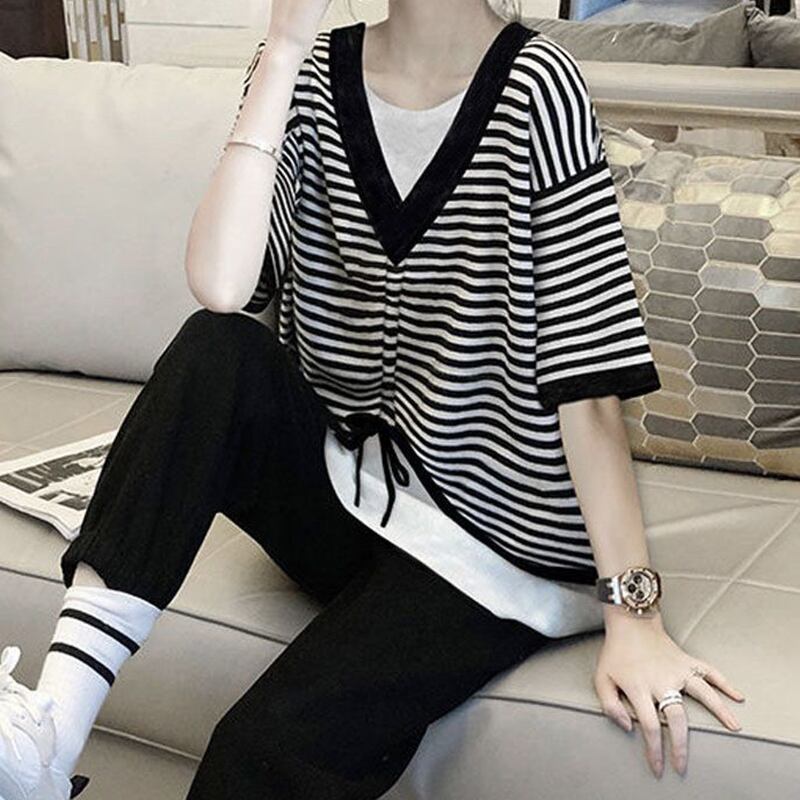 初回送料無料 春夏新作レディースファッション カジュアル フェイク2枚 着?せ 半袖 トップス