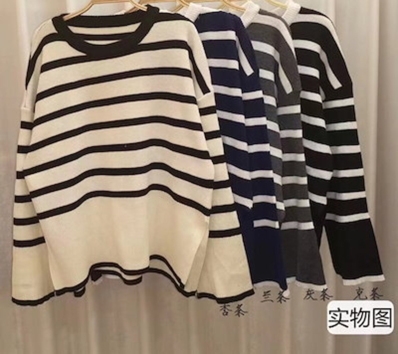 人気 ベーシックニット 韓国版ストライプニット女性2024秋冬新作ゆったりセーター ニット レディース ジャンパー トップス