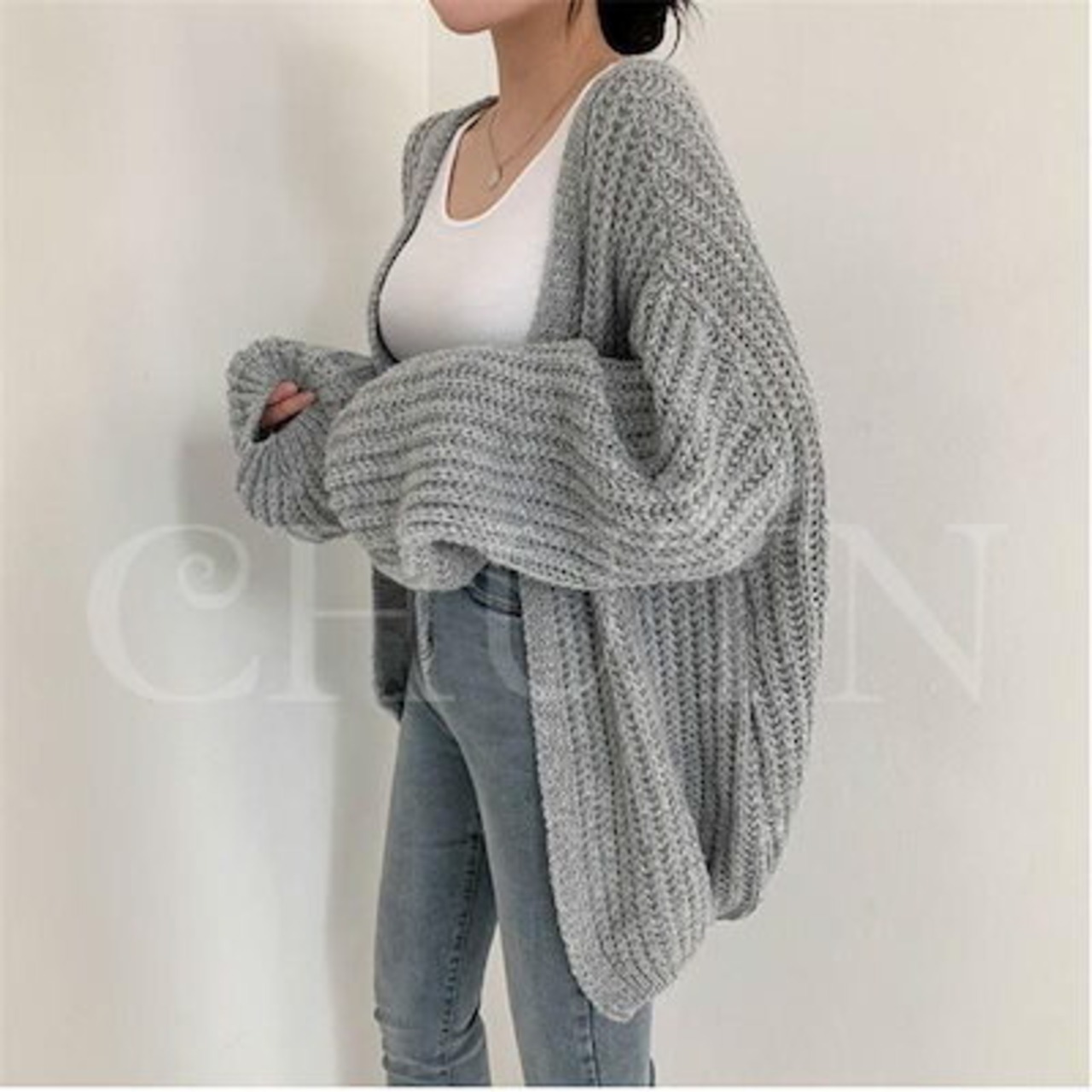 ベーシックニット万能流行感 ニット カーディガン レディース トップス セーター 長袖 ショート ぽわん袖 ゆったり カジュアル 無地 春 秋 冬 バルーン袖 ボリューム アウター 韓国風 可愛い | KAGEYAMA-SECOND