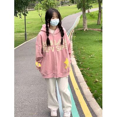 韓国 パーカーアメリカのレトロなハイストリートヒップホップタイドジャケット秋と冬の新しいベルベット厚くオーバーサイズのセーター