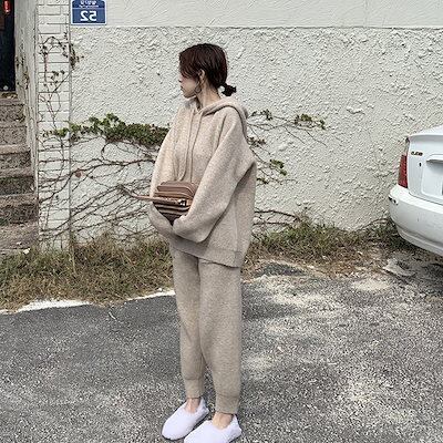 ト上下セットニットセットニット+ワイドパンツゆる体型カバークール長袖 無地 カジュアル新作 おしゃれ