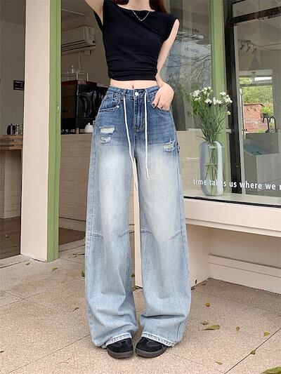 2024春夏パンツ デニム ジーンズ グラデーション ワイド ストレート ハイウエスト 脚長効果 美脚効果 細見え 春 カジュアル おしゃれ かわいい 韓国ファッション レディース お出かけ | KAGEYAMA-SECOND