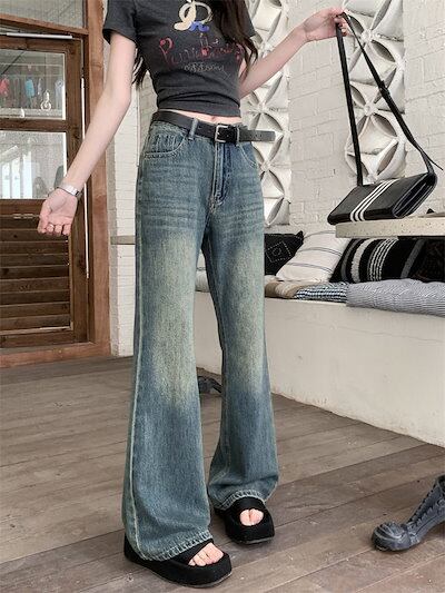 2024春夏パンツ デニム ジーンズ ワイド ストレート ハイウエスト 脚長効果 美脚効果 細見え ウォッシュ加工 夏 カジュアル おしゃれ かわいい 韓国ファッション レディース お出かけ | KAGEYAMA-SECOND