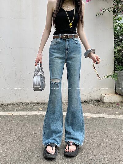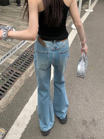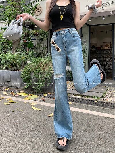 2024春夏パンツ デニム ジーンズ ワイドレッグ ハイウエスト 脚長効果 美脚効果 細見え ダメージ加工 夏 カジュアル おしゃれ かわいい 韓国ファッション レディース お出かけ | KAGEYAMA-SECOND