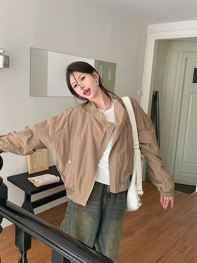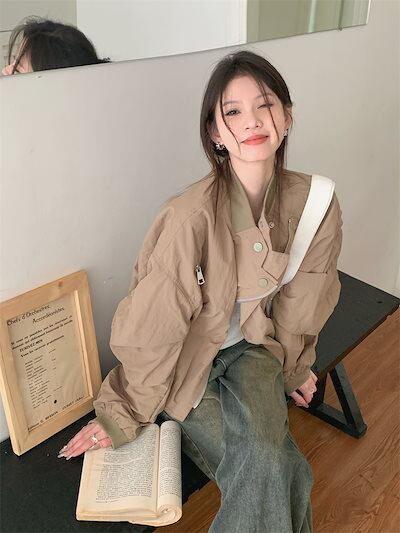 2024春夏 ショート かわいい フル ブルゾン トップス アウター ショート スタンド ショート お出かけハイストリートアウター長袖セクシートップスカジュアルファッションお出かけ 秋トラック | KAGEYAMA-SECOND