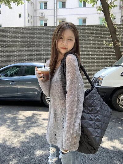 2024春夏 長袖 ニット プルトップスストリートカジュアエコルシルエットクルーネック加工色っぽ 女っぽ カジュアル 大人っぽ 上品 サイズフェミニンゆったりカジュアル レディースゆったり秋冬春 | KAGEYAMA-SECOND