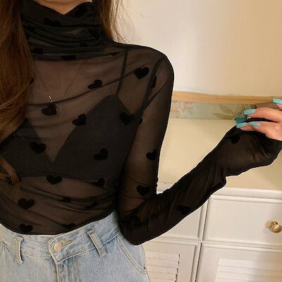 2024春夏 透けアイテム を楽しむ 透明感UP 長袖 タイト tシャツ ファッション 韓国 トップス デザインハイネックカットソーTイラストエンジェル 長袖 ロングプリント カジュアル 夏春 秋 | KAGEYAMA-SECOND