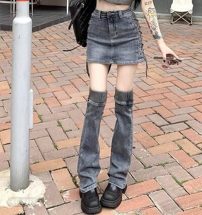 スカート デニム ミニ丈 タイト スリム 編み上げ 細見え かわいい おしゃれ カジュアル お出かけ 脚長効果 美脚効果