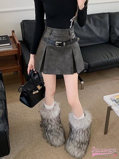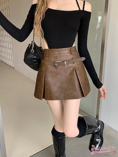 Aラインスカート レザー 可愛い アメリカンスタイルファッション レディース 大人 カジュアル シンプル 2Color