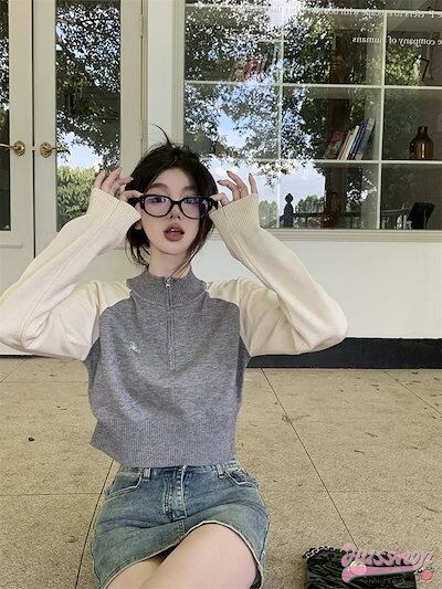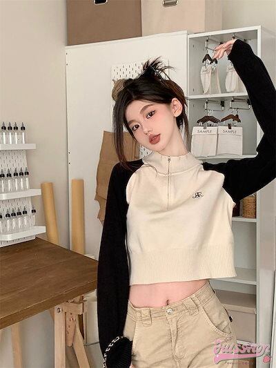 トップス 長袖 ニット セーター レディース ショート おしゃれ カラバリ ハーフ カラー スタイルアップ 色っぽ 女っぽ カジュアル きれいめ 大人 ネック ファッション フェミニン 秋 冬 春 | KAGEYAMA-SECOND