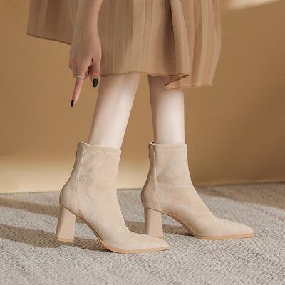 【3日以内出荷】厚底シューズ ポインテッドトゥ太ヒールチェルシーブーツ2023春秋新作英国風マーティンブーツショートブーツレディース 韓国